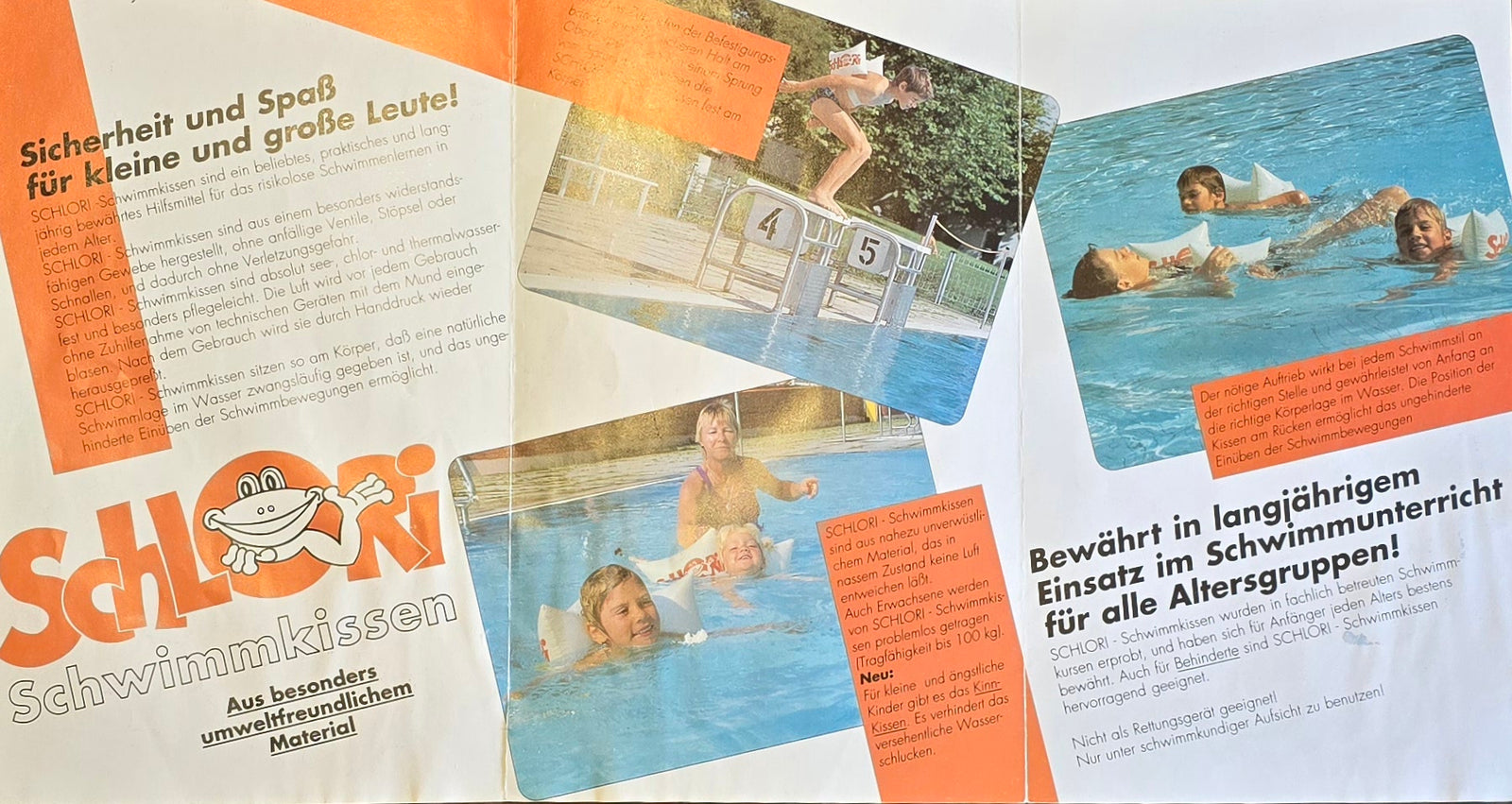 Hier findest du einen besonderen Blick in die Vergangenheit: alte Produktverpackungen, Werbeanzeigen und Flyer, die zeigen, wie sich Schlori über die Jahrzehnte entwickelt hat. Von den ersten Schwimmkissen bis heute – unsere Werte sind geblieben, aber das Design hat sich verändert.